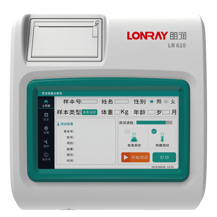 熒光免疫分析儀8大優勢 定量檢測: 所有項目定量檢測;快速測試: 檢測時間低至3分鐘;高精度:變異系數低于10%;靈敏度高:檢測限可達pg/ml;更智能化:二維碼數據管理;安卓系統:智能操作系統;更人性化:自帶提手便于攜帶;選配電池:實現戶外移動檢測。